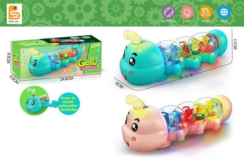 Denna kugghjulslarven är perfekt för små utforskare! Färgglada kugghjul med blinkande ljus och musik.